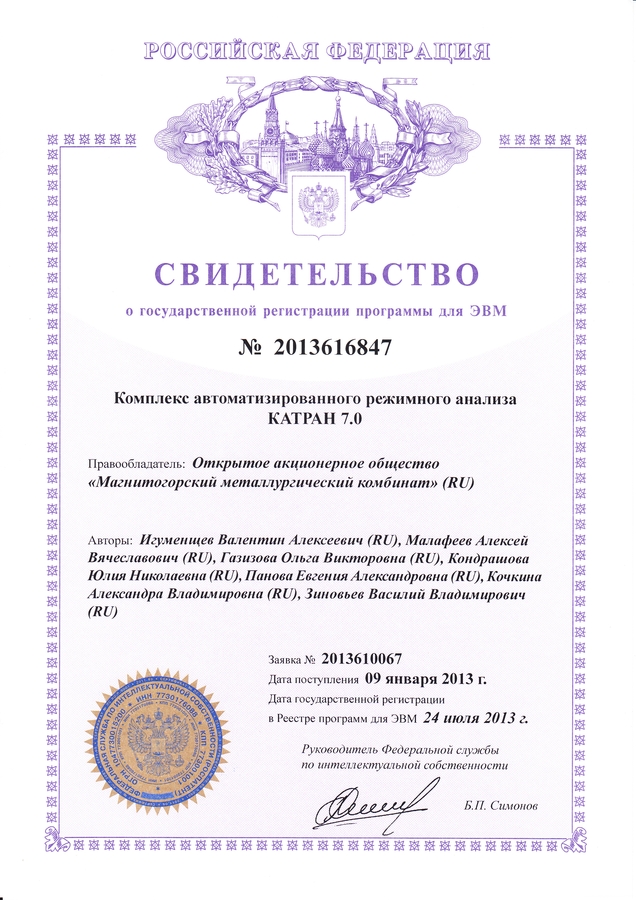 Свидетельство о гос. регистрации программы Катран 7.0