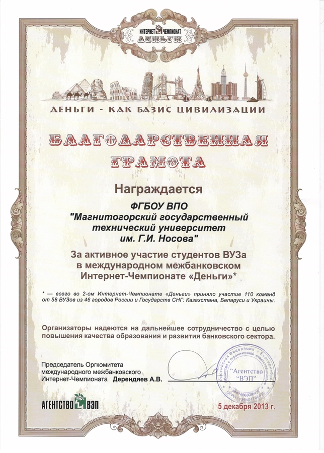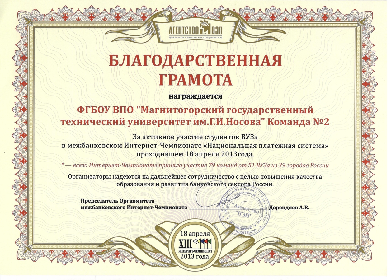 Благодарственная грамота МГТУ