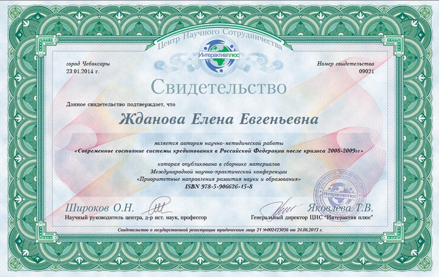 Свидетельство Ждановой Е.
