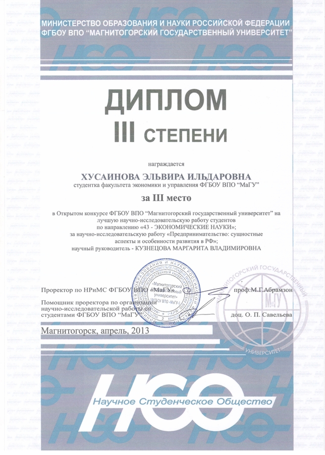 Диплом Хусаиновой Э.И.