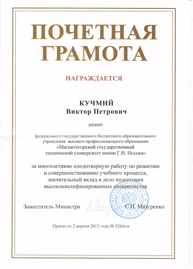 Грамота Кучмий В.П.