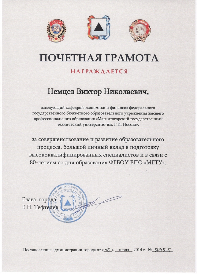Грамота Немцева В.Н.