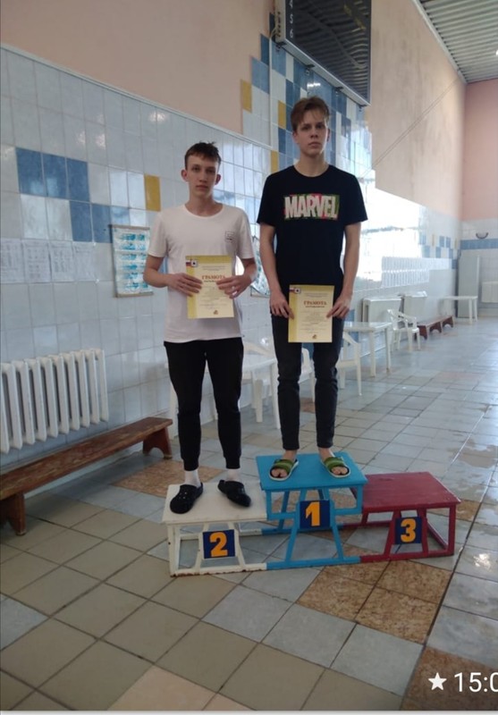 I и II место (Ионов Михаил, Дарвин Евгений) в первенстве города по плаванию