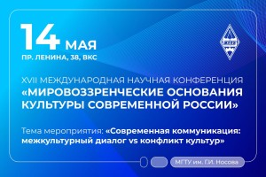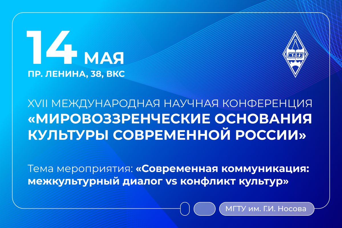 Кафедра философии МГТУ им. Г.И. Носова приглашает вас принять участие в традиционной XVII Международной научной конференции «Мировоззренческие основания культуры современной России».