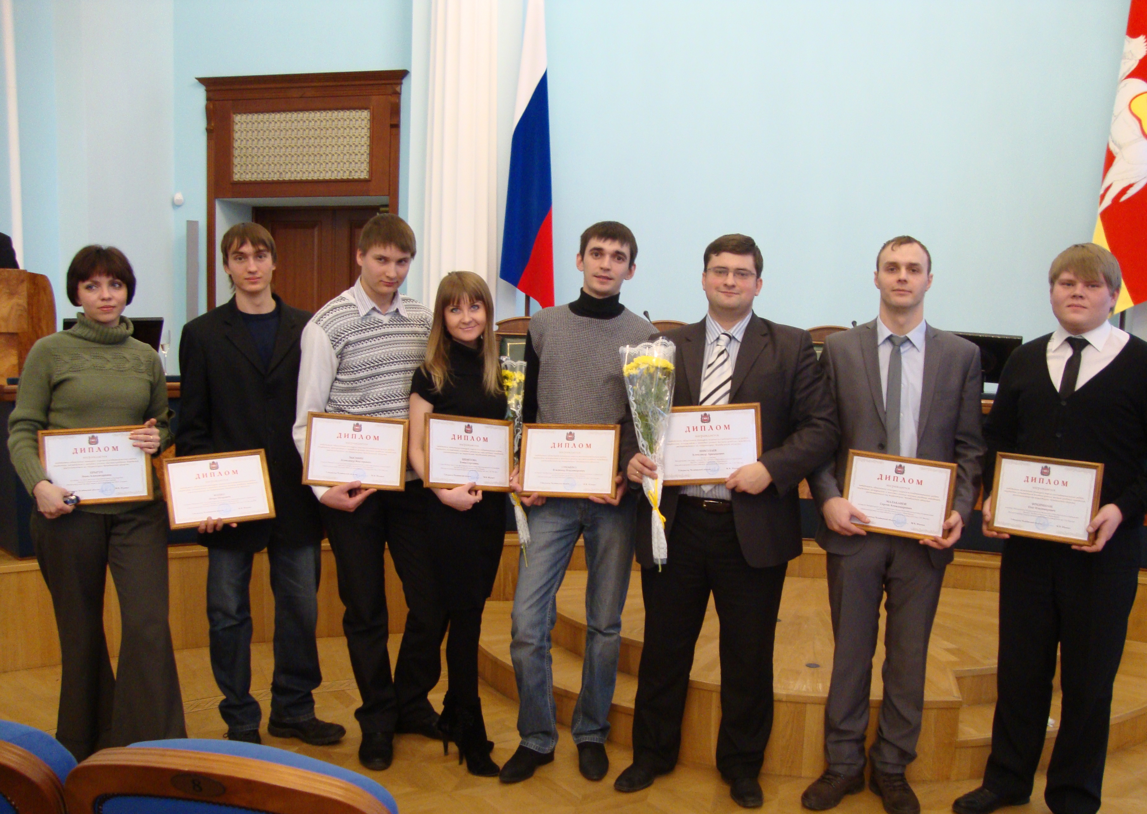 В конце декабря в областной столице состоялось награждение 100 победителей конкурса – студентов, аспирантов и молодых ученых вузов Челябинской области. Церемонию награждения вели заместитель губернатора П.А. Рыжий, министр образования А. И. Кузнецов и президент ЮУрГУ Г.П. Вяткин. Ребята получили дипломы и денежные премии в размере: студенты по 10, аспиранты по 20, и молодые ученые – 30 тысяч рублей. Среди них два студента МГТУ Елена Шеметова (рук. д.т.н., проф. Н.Н. Огарков) и Александр Лысенин (д.т.н., проф А.Г. Корчунов), семь аспирантов - Владимир Семашко и Сергей Малаканов (д.т.н., проф. О.С. Железков), Игорь Мацко (д.т.н., проф. О.С. Логунова), Евгений Панов (к.т.н., доц. А.В. Малафеев), Анастасия Валяева (д.т.н., проф. А.С. Сарваров), Олег Фридрихсон (д.т.н., проф. С.Н. Корнилов), Сергей Железков (к.т.н., доц. А.Б. Моллер), два молодых ученых - Вадим Храмшин (д.т.н., проф. А.С. Карандаев) и Александр Николаев (д.т.н., доц. Г.П. Корнилов). С победой вас, молодые поборники науки и уважаемые руководители!