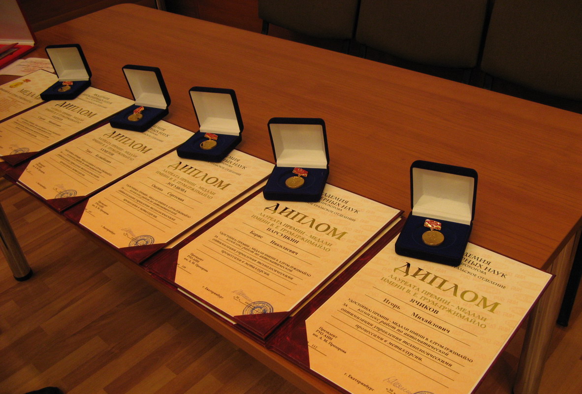 На ученом совете 30 октября научный коллектив в составе профессоров д.т.н. Б.Н. Парсункина, О.С. Логуновой, И.М. Ячикова, кандидатов технических наук С.М. Андреева и У.Б. Ахметова получили дипломы лауреатов премии-медали им. В.Е. Грум-Гржимайло, присужденной Региональным Уральским отделением Академии инженерных наук им. А.М. Прохорова за комплекс работ по оптимизации управления технологическими процессами в металлургии.